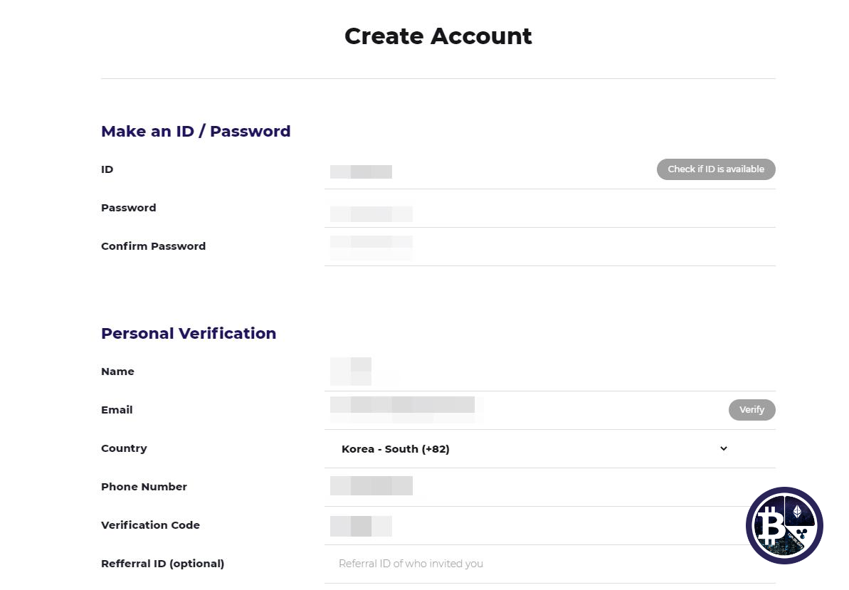 ID, 비밀번호, 비밀번호 확인